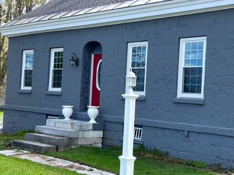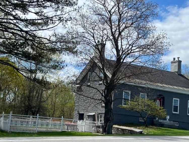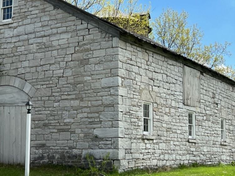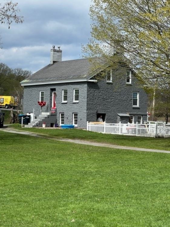 175 year old blue limestone house with two limestone barns and silo. William Rees built this blue limestone house in 1848. The size of this house is deceptively spacious, containing 4 bedrooms and a bath upstairs. Main floor: Living room with fireplace, Library, dining room with fireplace, kitchen, and full bath, with washer and dryer. The basement is fully finished with a fireplace and full bath, bedroom, it could be used as a second living quarters. The new owners have replaced the roof, repointed the house, and painted it. There is a new forced furnace including air conditioning, all new wiring 200 amp, and Pecks plumbing. The fireplaces are gas inserts or can be removed to burn wood. They have ordered new Transoms for front windows and 7 awnings for all the other windows. There are hardwood floors throughout the house with carpet runners that stay with the house. All new appliances for kitchen and laundry room which stay with the house, also all furniture. They are leaving the John Deer mower and Toro snowblower. There are two limestone barns and a silo, the large barn can house up to 6 horses with tack room and the smaller barn can hold 2 ponies. The décor is mainly Victorian style and everything in the house is brand new. You have got to see it to believe it.